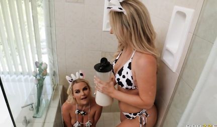 Две пышные милфы с большими дойками и задницами больше всего любят на досуге заниматься лесбийскими шалостями и фетишем на тему молока и даже доярок. Вот и сегодня не сильно худые любовницы балуются и ласкаются. Но в гости к пухлым лесбиянкам заходит общий друг Зак Вилд, который совсем не против присоединиться к паре шалуний. Ну раз те так обожают молоко пусть подергают за хер своего друга и будет им счастье и групповое порно с крепким членом. Не все же подлизывать друг другу письки...