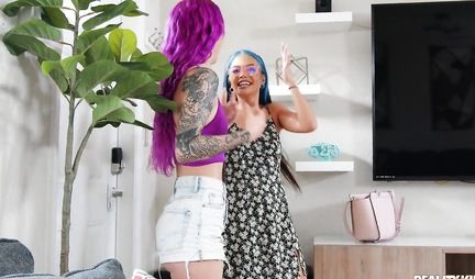 Яркие молодые красотки в групповом порно кайфуют от одного члена