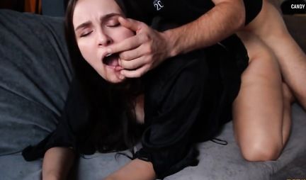 Жена в позе раком подставляет сочную дырочку для домашнего порно на диване