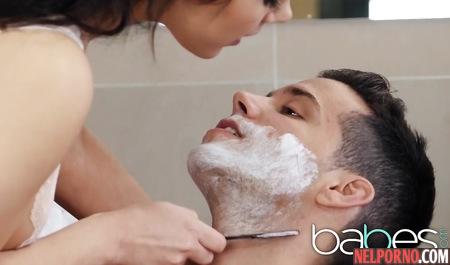 Ну не то, чтобы этот хлопец был просто таки законченный продуман и выжига, но если знакомая с довольно таки пышной сракой пользуется возможностью оттачивать своем мастерство по выбриванию лиц сильного пола на приличной щетине любимого друга, то почему она должна это делать на халяву. Вот потому, когда все заканчивается молодчик тащит красотку к себе в койку, чтобы отлизать ее сочную вагину и для приличия загнать стоячий половой член в анальную дырку помощницы.