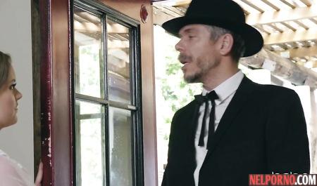 Зрелый мужчина после минета трахает членом анал молодой девицы
